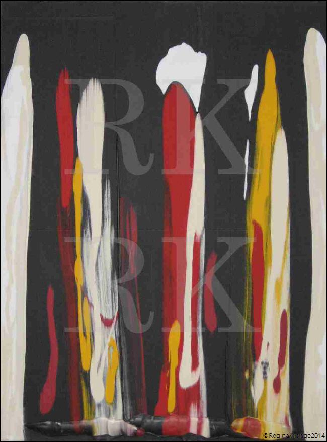 Es hat sich in den letzten Bildern angekündigt. Es sind nicht mehr Farben, Formen oder experimentelle Techniken, die für den Entstehungsprozess dieser Malereien bildgebend sind. Es sind Stimmungen, Gedanken und Gefühle, kurz mein Seelenleben. Bilder als emotionaler Ausdruck, abstrakter Expressionismus.